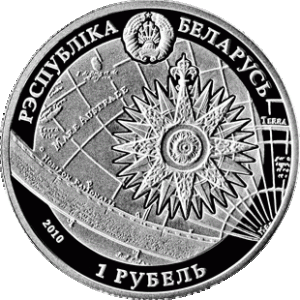 At the top - a relief image of the State Emblem of the Republic of Belarus and a circle inscription: "РЭСПУБЛIКА БЕЛАРУСЬ" (THE REPUBLIC OF BELARUS); in the center — a stylized image of the wind rose (the silver coin features a hologram thereon) against the background of the navigation sea chart; circle inscription: at the bottom - denomination: "ДВАЦЦАЦЬ РУБЛЁЎ" (TWENTY ROUBLES) on the silver coin and "АДЗІН РУБЕЛЬ" (ONE ROUBLE) on the copper–nickel one, to the left of it - the year of coinage, (on the right side of the silver coin - alloy standard and trademark of The Mint of Poland PLC.