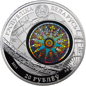 At the top - a relief image of the State Emblem of the Republic of Belarus and a circle inscription: "РЭСПУБЛIКА БЕЛАРУСЬ" (THE REPUBLIC OF BELARUS); in the center — a stylized image of the wind rose (the silver coin features a hologram thereon) against the background of the navigation sea chart; circle inscription: at the bottom - denomination: "ДВАЦЦАЦЬ РУБЛЁЎ" (TWENTY ROUBLES) on the silver coin and "АДЗІН РУБЕЛЬ" (ONE ROUBLE) on the copper–nickel one, to the left of it - the year of coinage, (on the right side of the silver coin - alloy standard and trademark of The Mint of Poland PLC.
