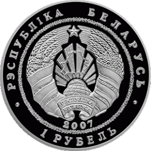 In the circle framed by geometric ornament - a relief image of the State Emblem of the Republic of Belarus; below - the year of coinage (alloy standard on the gold and silver coins); circle inscription at the top: "РЭСПУБЛIКА БЕЛАРУСЬ" (THE REPUBLIC OF BELARUS), at the bottom - "СТО РУБЛЁЎ" (ONE HUNDRED RUBLES) on the gold coin, "ДВАЦЦАЦЬ РУБЛЁЎ" (TWENTY RUBLES) on the silver coin, and АДЗIН РУБЕЛЬ (ONE RUBLE) on the copper–nickel one.