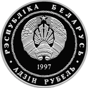 Within a circle geometric ornament - a relief image of the State Emblem of the Republic of Belarus; below - the year of coinage, silver coin - fine silver content and alloy standard; circle inscription at the top: "РЭСПУБЛІКА БЕЛАРУСЬ" (THE REPUBLIC OF BELARUS), at the bottom - "ДВАЦЦАЦЬ РУБЛЁЎ"(TWENTY ROUBLES) on the silver coin and "АД3IН РУБЕЛЬ" (ONE ROUBLE) on the copper–nickel one.