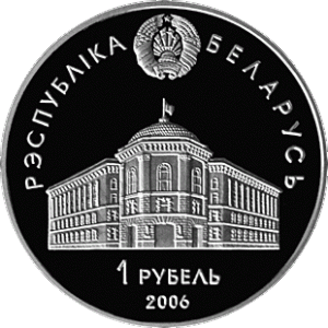 In the center - a relief image of the Executive committee building of the Commonwealth of Independent States, at the top – a relief image of the State Emblem of the Republic of Belarus and an inscription: "РЭСПУБЛIКА БЕЛАРУСЬ" (THE REPUBLIC OF BELARUS); at the bottom - the year of coinage, on the silver coin - alloy standard and denomination: "ДВАЦЦАЦЬ РУБЛЁЎ"(TWENTY ROUBLES), "АД3IН РУБЕЛЬ" (ONE ROUBLE) on the copper–nickel one.